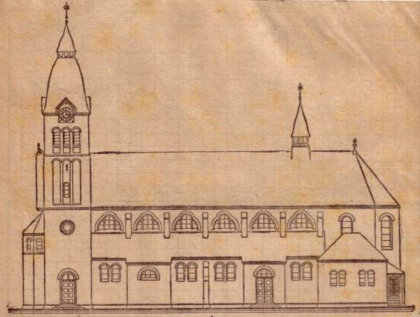 Am Sonntag, dem 15. September 1912, wurde der Grundstein der neuen Kirche in Laer gelegt. Die Beschaffung der notwendigen Mittel war nicht einfach gewesen. Den größten Teil des Grundstückes spendete Landwirt Goerdt. Der Bau selbst musste aus Sparsamkeitsgründen einfach bleiben und auch die erste Inneneinrichtung war einfach gehalten.
