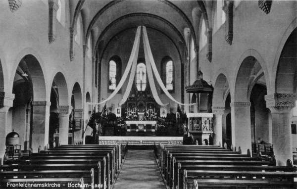 Das Gebäude der Fronleichnamkirche wurde in siner 95 jährigen Geschichte sowohl von innen als auch von außen mehrfach umgebaut. Insbesondere beim Wiederaufbau nach der Zerstörung im 2. Weltkrieg wurde das Erscheinungsbild wesentlich geändert. Die folgende Übersicht zeigt diese Entwicklung anhand von Außen- und Innenaufnahmen.